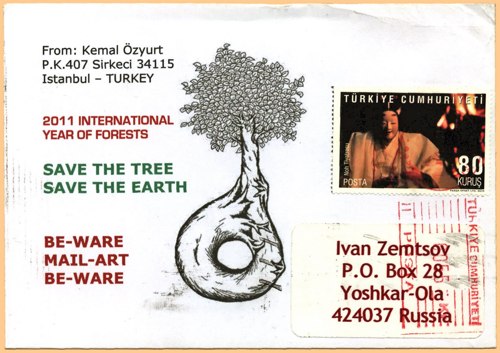 Mail art call arrived in envelope from Kemal Özyurt, Istanbul, Turkey. His contribution to "Long Distance Running" mail art project is posted there.